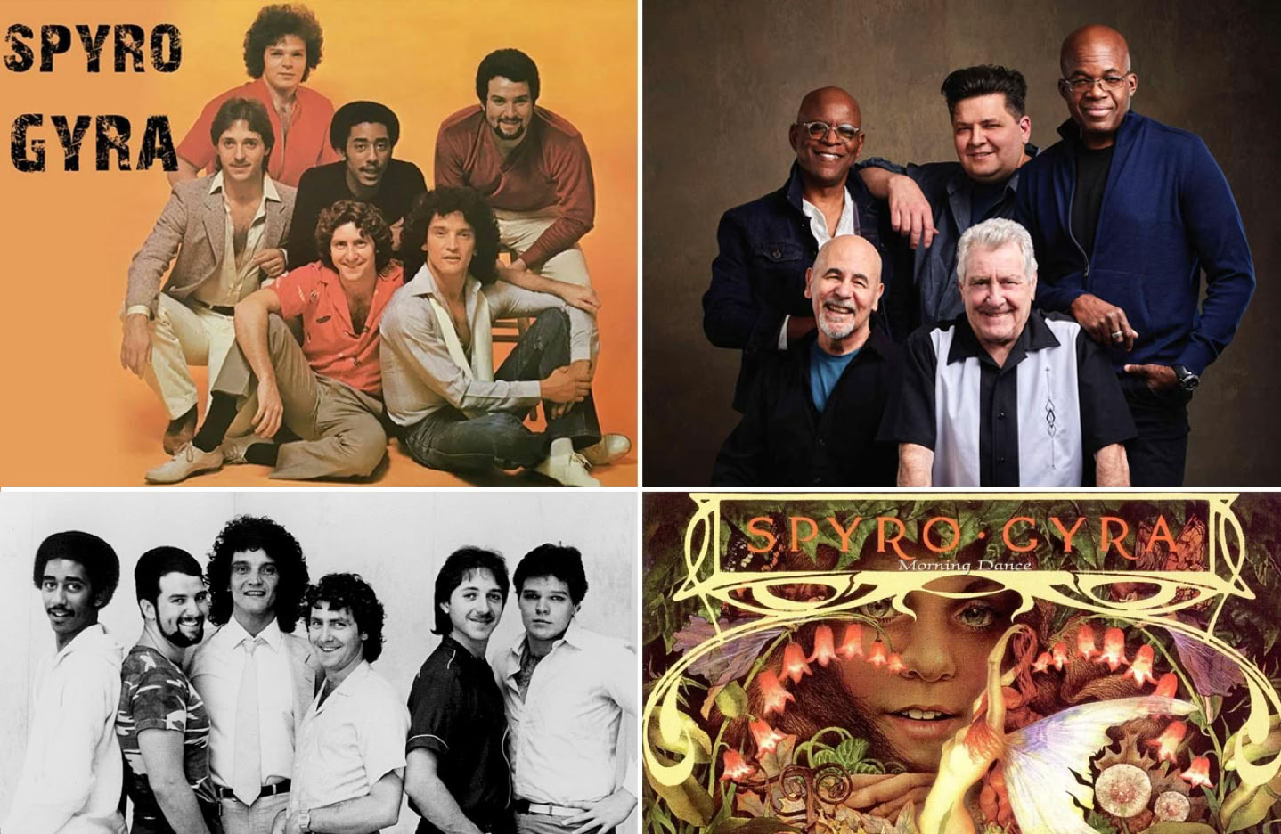 Spyro Gyra einst und heute, sowie ein Teil des Covers des Platin-Albums «Morning Dance».Spyro Gyra einst und heute, sowie ein Teil des Covers des Platin-Albums «Morning Dance».